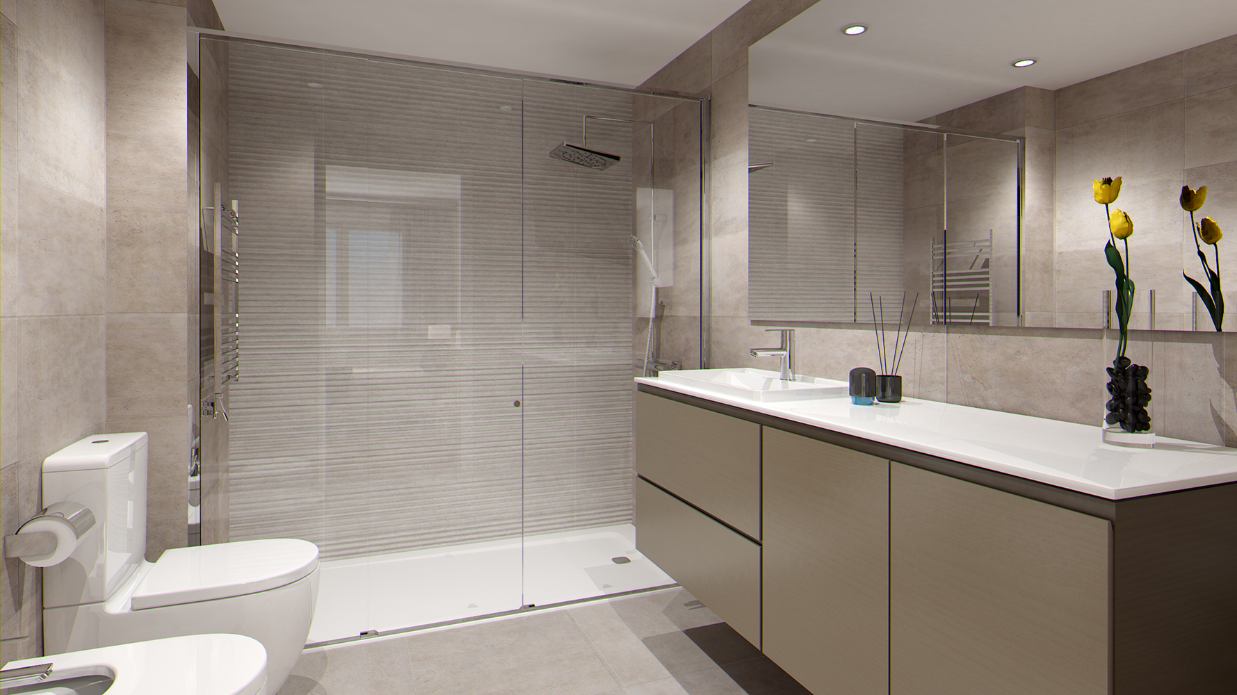 • Termòstat en sala d’estar i tovalloler elèctric en banys.